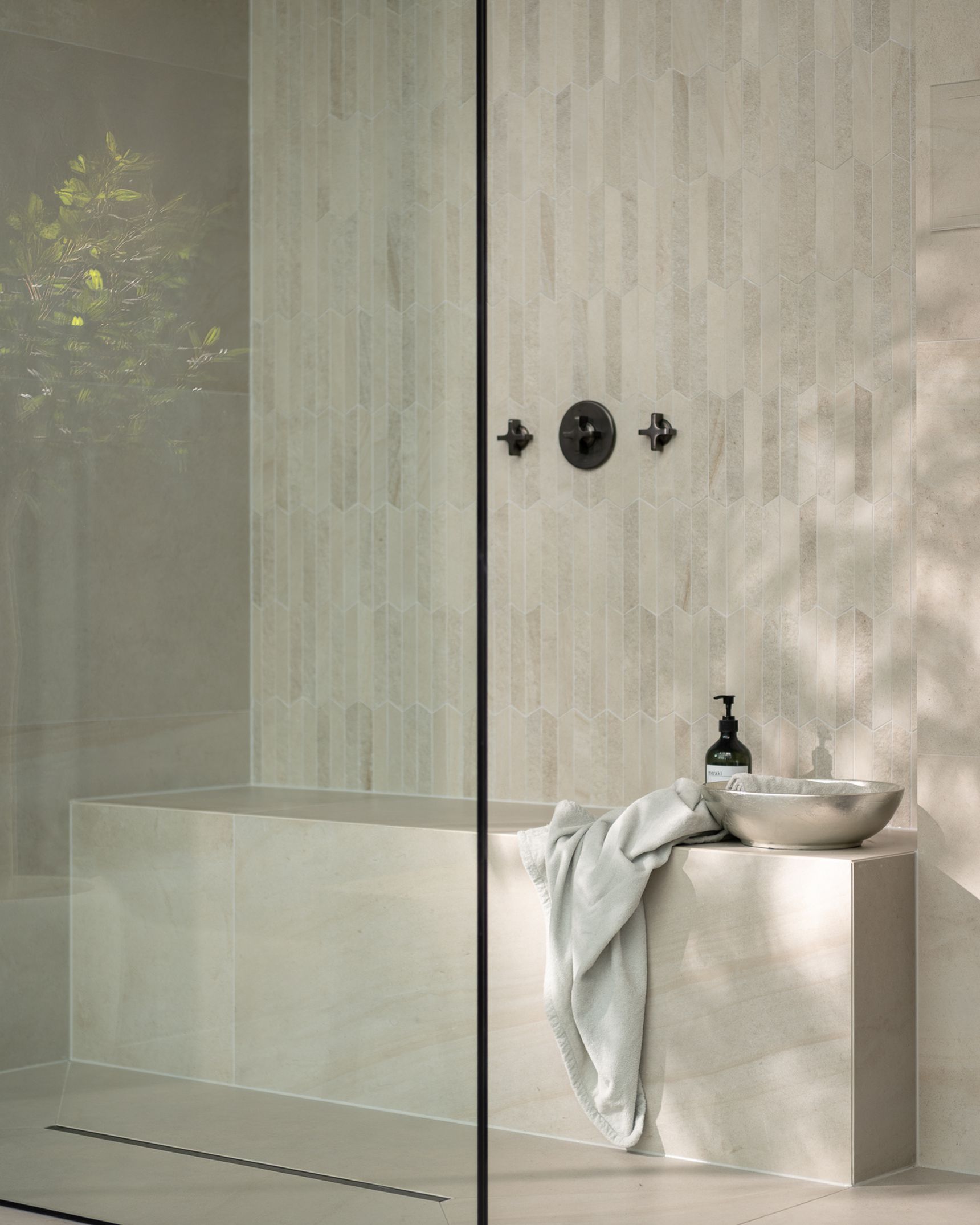 Tegels met subtiele lijnen of patronen in licht reliëf blijven een eyecatcher. Het geeft muren en vloeren een extra dimensie zonder dat het druk oogt. De lijnen spelen met licht en schaduw en zorgen zo voor een zachte dynamiek in het interieur.
