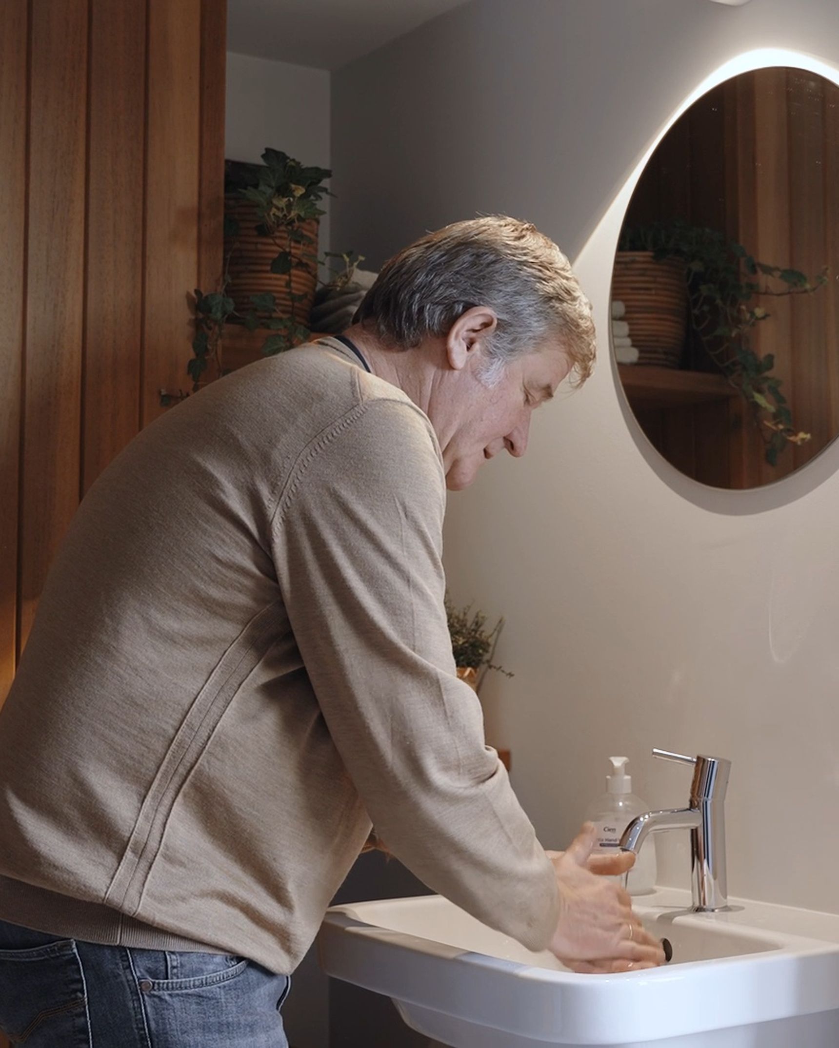 Hoewel de badkamer een volledige transformatie onderging, bleef de kern van de ruimte hetzelfde. “Ja, we blijven eigenlijk wel kinderbadkamer zeggen, de kinderen zijn onze gasten. Quasi onze enige gasten, zijn onze kinderen en kleinkinderen.” Vertelt Wouter glimlachend. Ze geven grootouders in spe een waardevolle tip: “Ga niet kleiner wonen, blijf groot genoeg wonen, dan komen de kinderen meer langs.” Wat ooit het epicentrum van hun gezin was, is dat nu nog steeds, maar met hun kleinkinderen erbij.